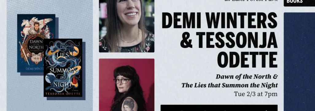 Third Place Books welcomes authors Demi Winters and Tessonja Odette to our Lake Forest Park store for a joint book launch celebration! In Dawn of the North, the latest book in Demi’s Ashen series, prodigal heir Silla returns to restore peace to the kingdom while her sister, held captive on a distant island, fights to return home. Meanwhile, The Lies that Summon the Night transports readers to a world where creative work is forbidden and immortal royals feast on the blood of human artists. Demi and Tessonja will be joined in conversation by Princess of Blood author and friend of the store Sarah Hawley. Tickets are required in advance.