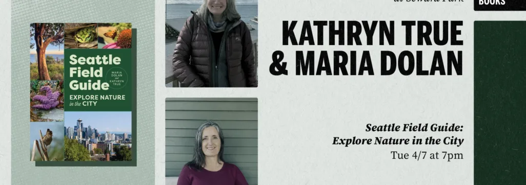 Third Place Books welcomes nature writers Kathryn True and Maria Dolan to our Seward Park store for a conversation about their new book Seattle Field Guide: Explore Nature in the City, a guide to 38 outdoor adventures across the greater Seattle area.